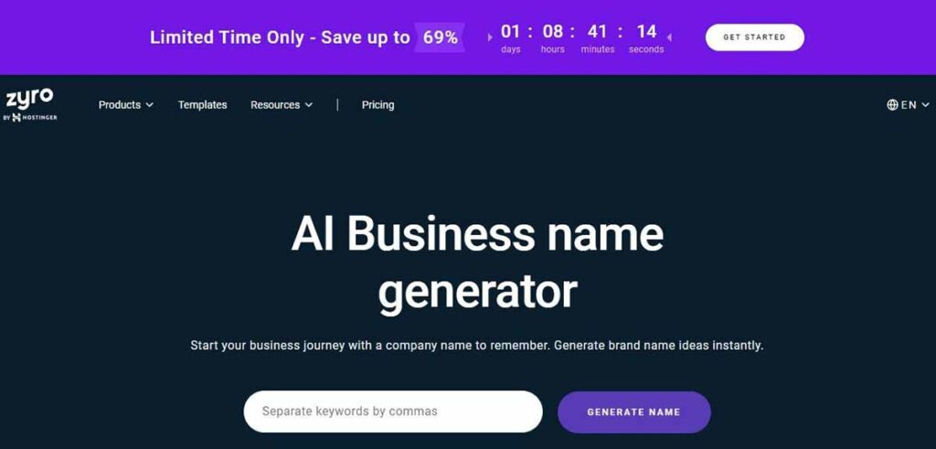 Zyro في الأصل منشئ مواقع ويب يستخدم في إنشاء مدونات جميلة باستخدام السحب والإفلات البسيط. ومع ذلك، فأداة Zyro توفر أيضًا أدوات مجانية لمساعدتك في إعداد مدونتك. أحد هذه الأدوات هو المولد. بدعم من الذكاء الاصطناعي Ai والذي يمكنك من خلاله الحصول على بعض توصيات الأسماء المُذهلة والجذابة.
