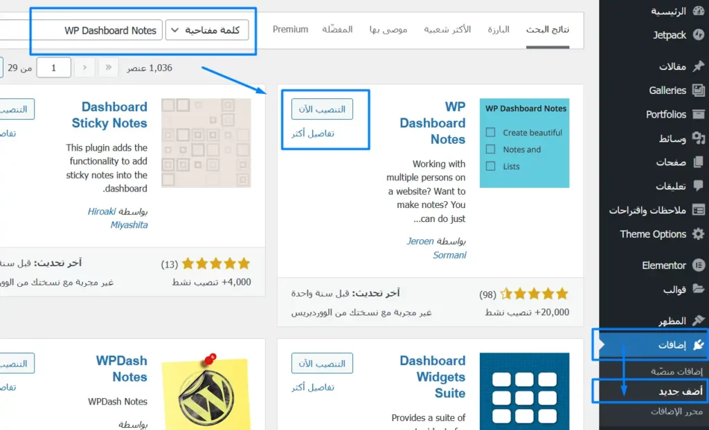 إدارة الملاحظات عبر إضافة WP Dashboard Notes