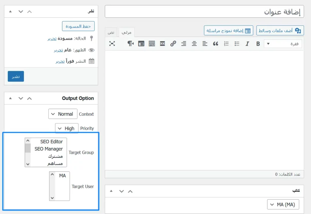 كما نلاحظ، يمكن التحكم في ظهور الملحوظة إلى أعضاء بعينهم، أو إلى مجموعة من الأعضاء، كما يمكننا أيضًا التحكم في أولوية الملاحظة وأهميتها من خلال خيار (Priority).