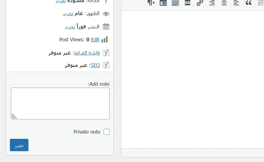 وبمجرد تنصيب الإضافة وتفعيلها سوف تجد خانة الملاحظات قد أصبحت موجودة أثناء إضافة أو تحرير الصفحة أو المقال: