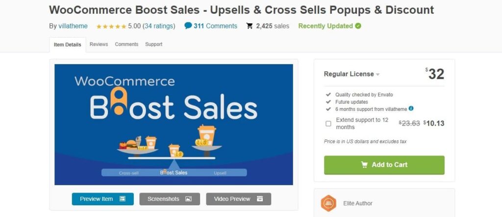 تعد أداة تحسين المبيعات على موقع الووكوميرس WooCommerce Boost Sales من VillaTheme من أحد أفضل الإضافات التي يمكنك الحصول عليها لتطبيق استراتيجية البيع البديل up selling. يبلغ سعر الأداة 30 دولار شهريًا.