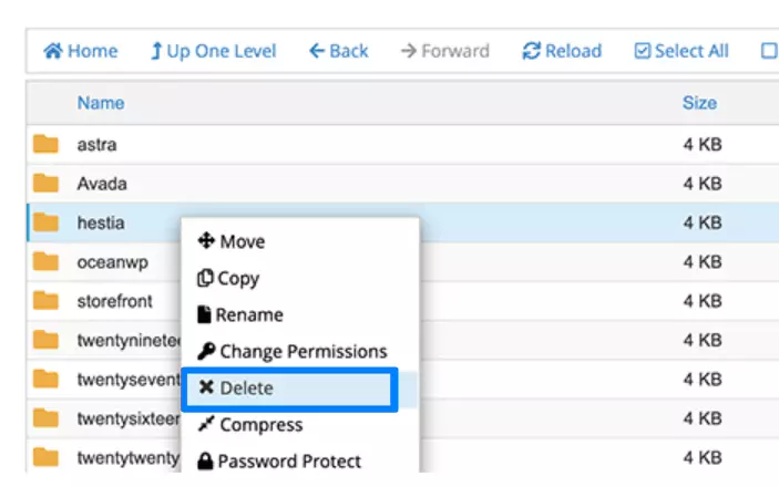 وبعد الدخول إلى مدير الملفات في استضافتك أيًا كانت سيكون عليك تحميل المجلد أولًا ليكون لديك نسخة احتياطية، ومن ثم حذفه بشكل كامل: