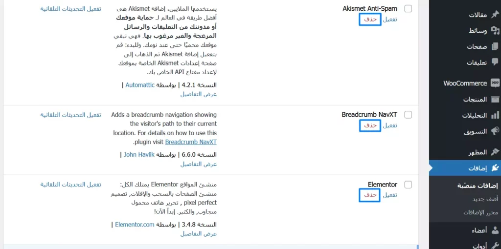 حذف وإلغاء تنصيب إضافات ووردبريس