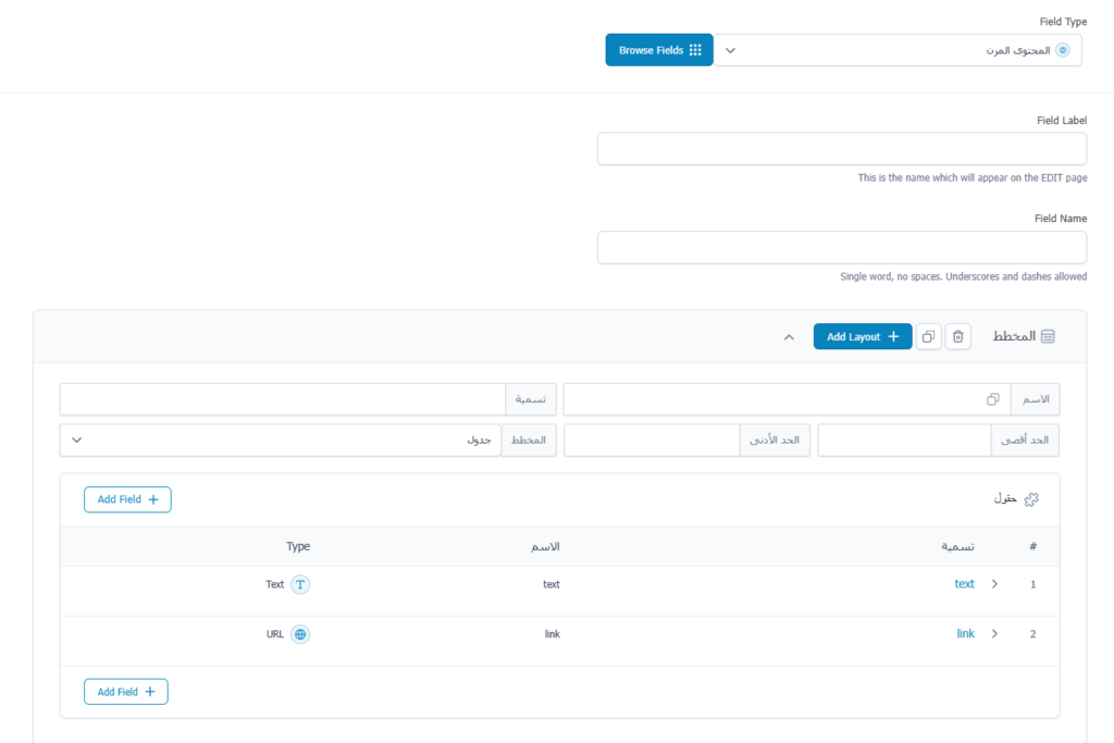 المحتوى المرن هو أحد الحقول المتقدمة التي تساعدك في تخصيص طرق عرض المحتوى على الموقع وإنشاء Layouts مخصصة تتناسب مع نوع المحتوى الذي ترغب في عرضه. يتيح لك هذا الحقل مرونة كبيرة في ترتيب وتنسيق المحتوى بطريقة تتناسب مع احتياجات الموقع، مما يوفر لك امكانيات متنوعة لعرض المحتوى بشكل مميز على موقعك.