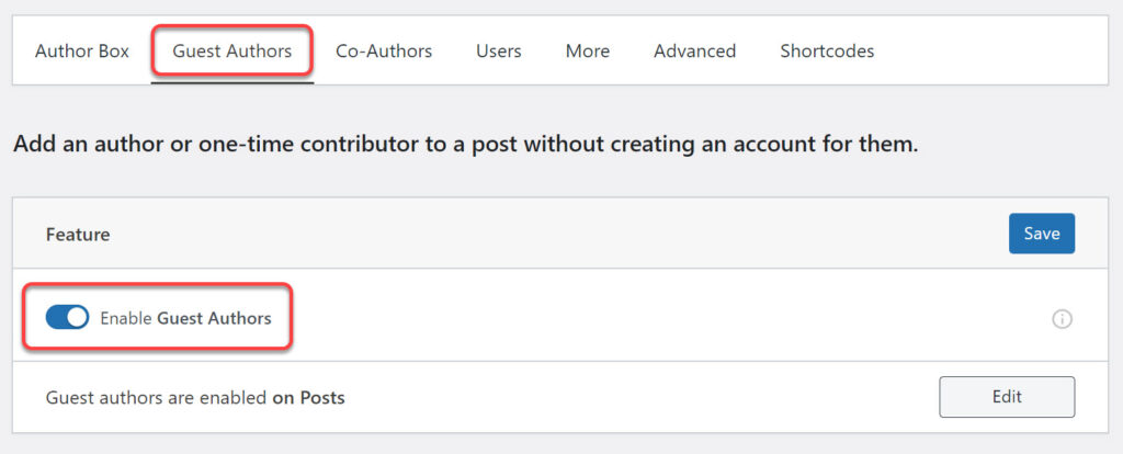 - Guest Author: هي إضافة مجانية بسيطة توفر فقط إمكانية إضافة اسم المؤلف الضيف للمقالة دون إنشاء حساب له، وذلك ضمن صفحة تحرير المقالة، لكنها لا تمكنك من إنشاء حساب ضيف واستخدامه بشكل متكرر، إذ عليك إضافة بيانات الضيف في كل مرة إذا كنت تود معاودة النشر باسمه.