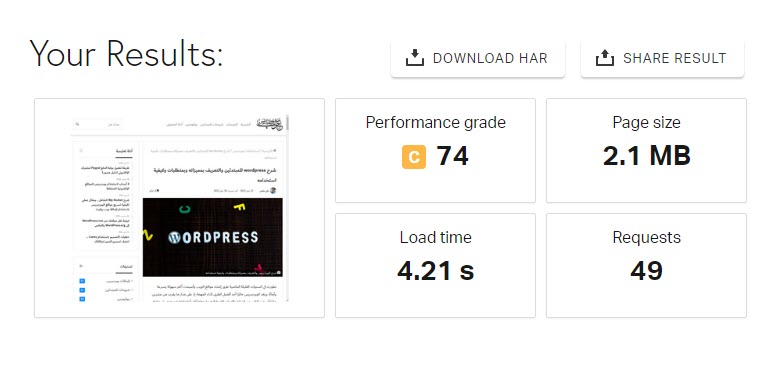 ملحوظة: حرصنا على عدم تنصيب إضافات ووردبريس تساعد على تحسين أداء الموقع لتحييد أي تأثير تحسين يمكن أن تتسب به مثل هذه الإضافات.