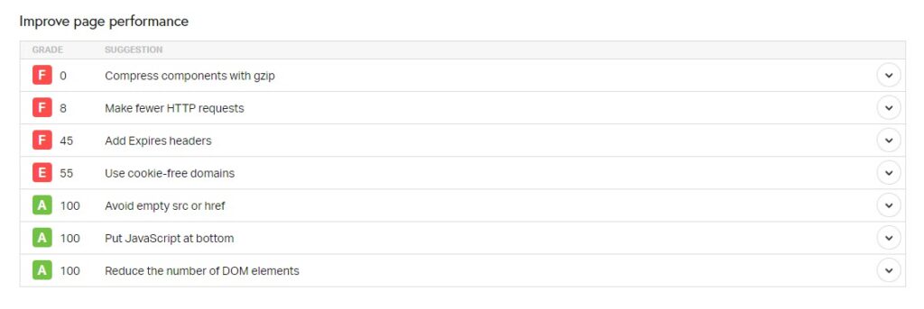 كما توفر Pingdom Speed Test أيضًا بالإضافة إلى معلومات حول سرعة الموقع مجموعة من النصائح التي تساعد على تسريع موقع الووردبريس، وتعلمك كذلك بأهم الممارسات التي تستخدمها في موقعك وقد ساعدت على رفع أدائه وتقييمه لديها، وبالتالي فهي تعلمك بنقاط القوة ونقاط الضعف لديك.