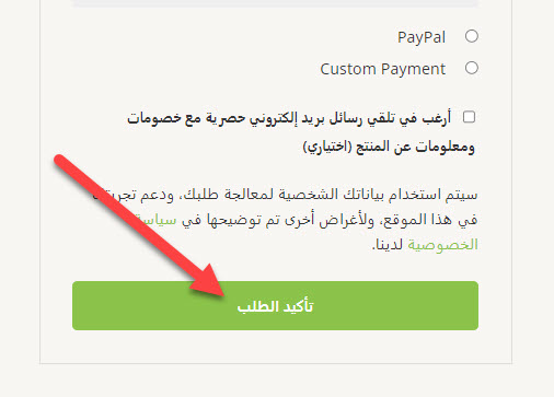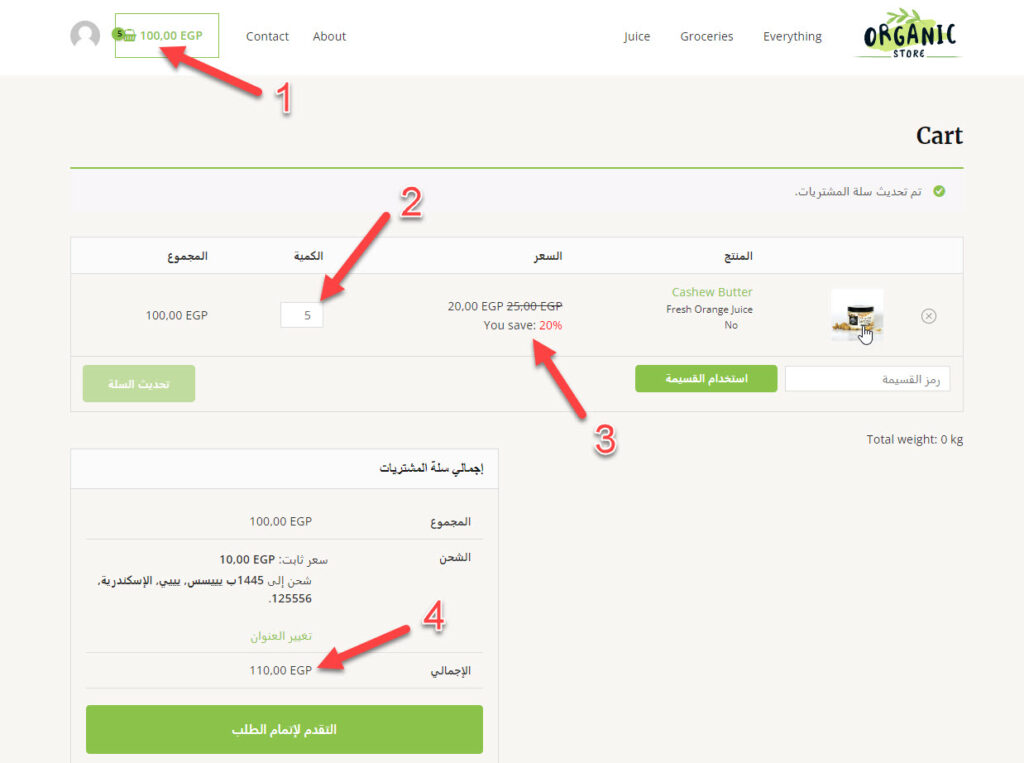 إذا رجعت إلى المتجر سوف تجد انه تم تغيير مسمى الزر إلى "إتمام الشراء"، بدلاً من تأكيد الطلب.