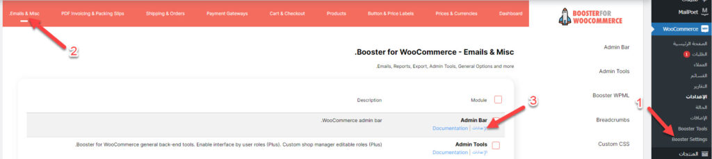 من إعدادات بوستر Booster Settings في لوحة التحكم اضغط على تبويب Emails & Misc.
