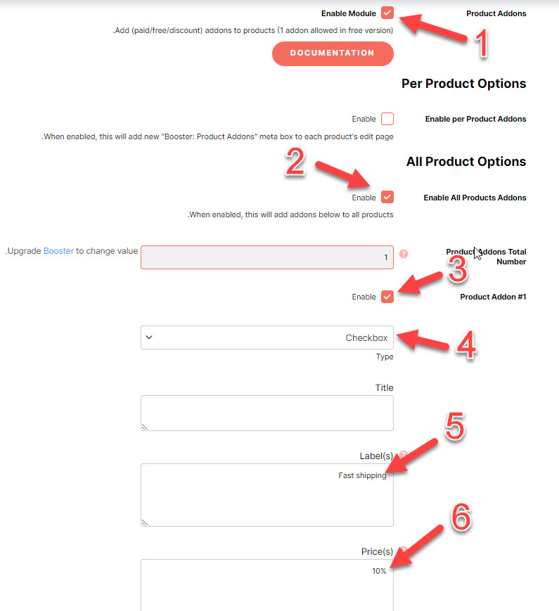 اجعل هذه الخاصية مفعلة مع جميع منتجات متجرك من خلال تفعيل مربع Enable All Products Addons.