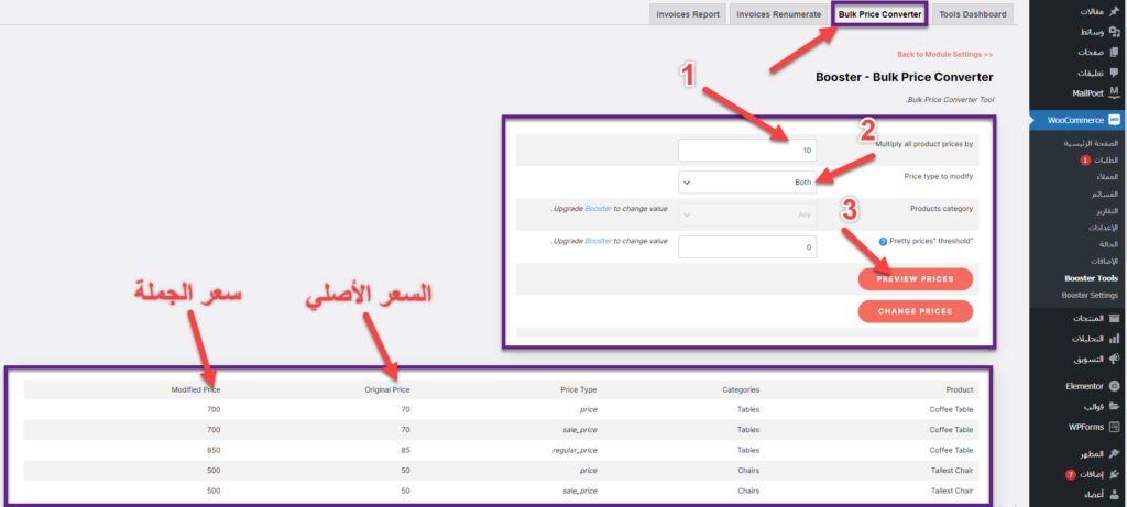 قم بتفعيل الخيار الأول ثم اضغط على حفظ التغييرات، وفي الخطوة الثالثة اضغط على أداة Bulk Price Converter.