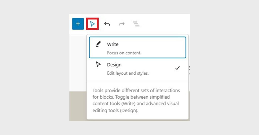 في الإصدارات السابقة كان يمكن للمستخدم التنقل بين وضع الكتابة ووضع التصميم، لكن في تحديث جوتنبرغ 19.5 أصبح بالإمكان تحديد الوضع الافتراضي المفضل، بحيث يبقى ثابتًا حتى بعد إغلاق المحرر أو تحديث الصفحة.