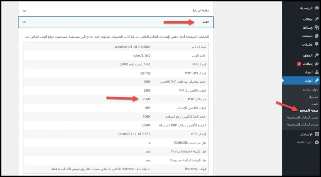 5. من الخادم اقرأ حد ذاكرة PHP الذي لديك.