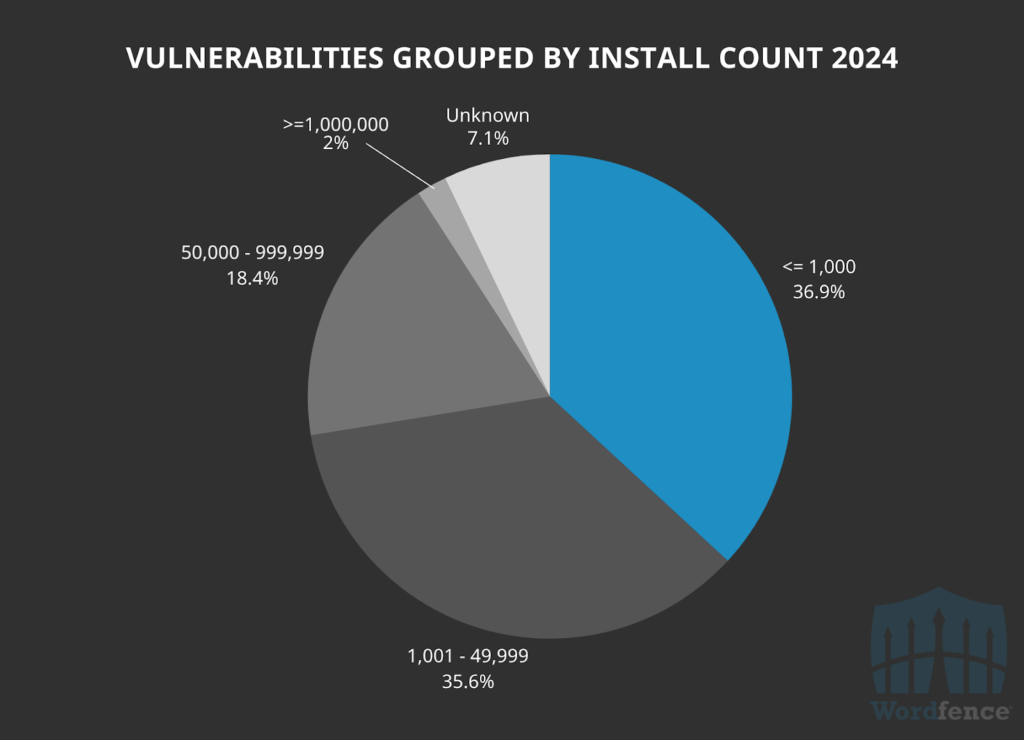 أكد التقرير أيضًا أن 58% من الثغرات المكتشفة كانت في الإضافات التي تملك أقل من 10 آلاف عملية تثبيت نشطة، مما يشير إلى أن معظم الثغرات لا تؤثر على المواقع الكبيرة أو التي تستخدم إضافات شهيرة، لكن يبقى الحذر ضروريًا من الثغرات في الإضافات الأقل شهرة لأنها قد تصبح أهدافًا جذابة للمهاجمين الذين يبحثون عن ثغرات سهلة الاستغلال.