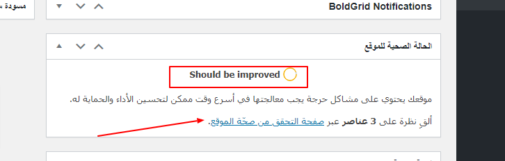 يُقدم لكَ موقع ووردبريس فحص دوري لصحة موقعك، ويمكنك معرفة ذلك من خلال: