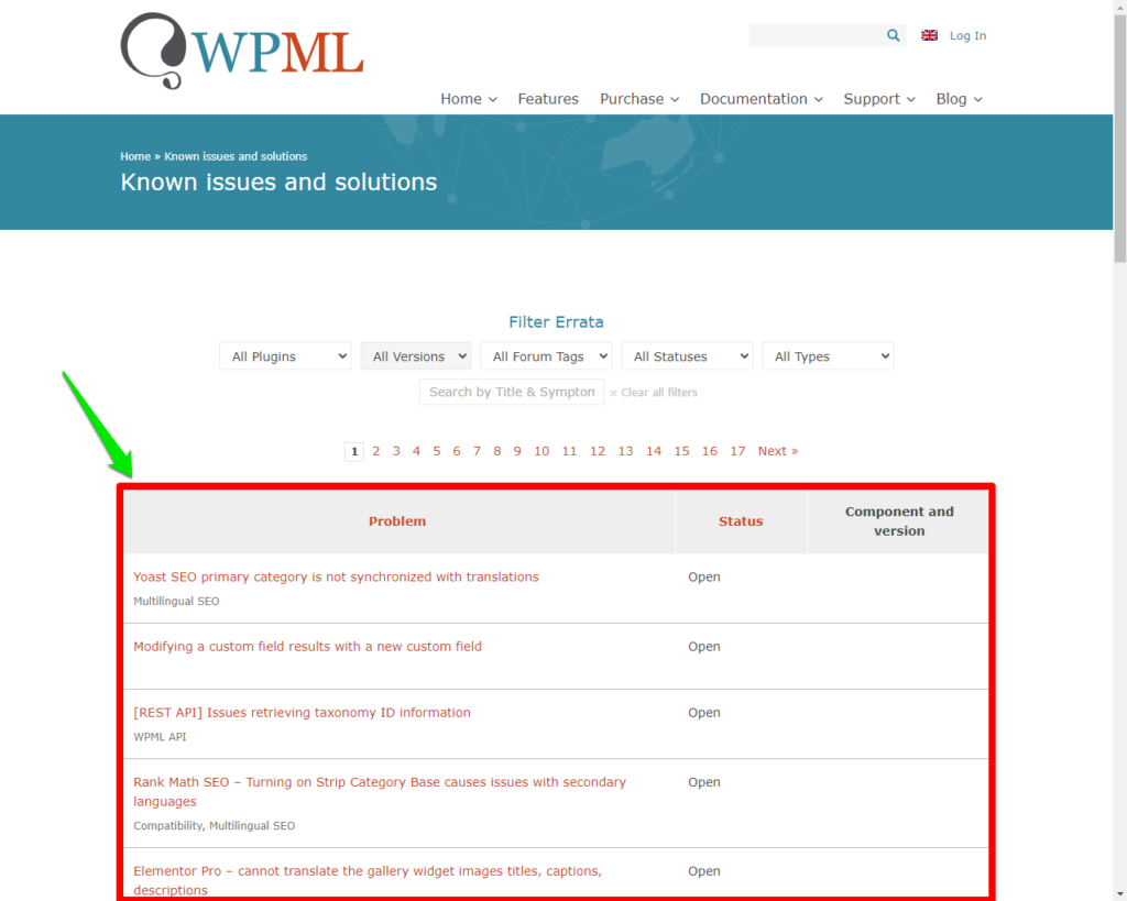 4- صفحة المشكلات المعروفة وحلولها في إضافة WPML