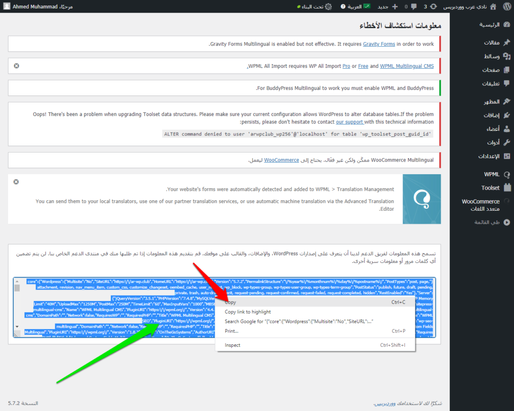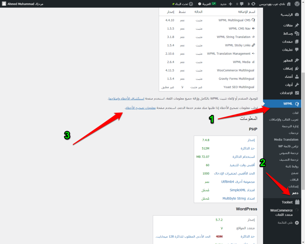 كيف تقدم معلومات المشاكل التقنية لإضافة WPML من أجل الحصول على دعم فني أفضل وأسرع لموقعك متعدد اللغات
