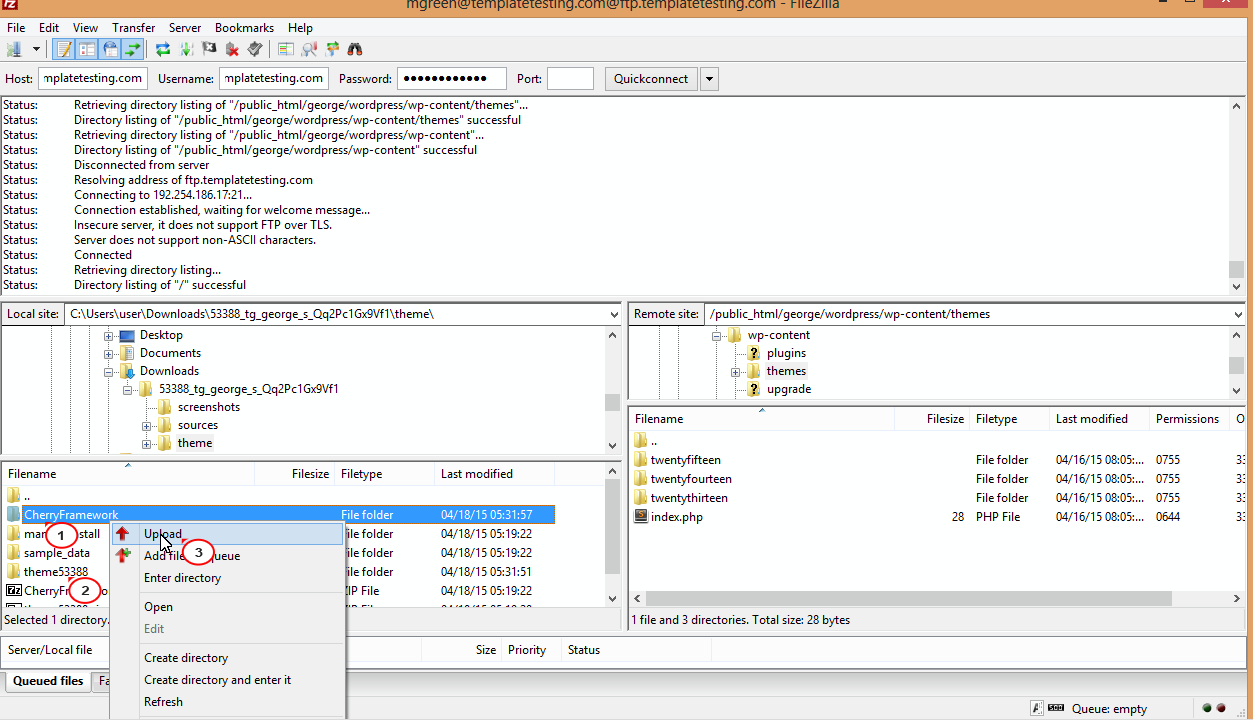 بعد ذلك ستختار الإضافة التي تريدها، وستقوم برفعها على الووردبريس الخاص بك، لكن من خلال أي برنامج من برامج FTP  كما هو موضح في الصورة. الفكرة هنا أن هذه البرامج تعد منصة يتعامل فيها العميل مع منتجات الشركة بشكل مباشر وبموافقتها.
