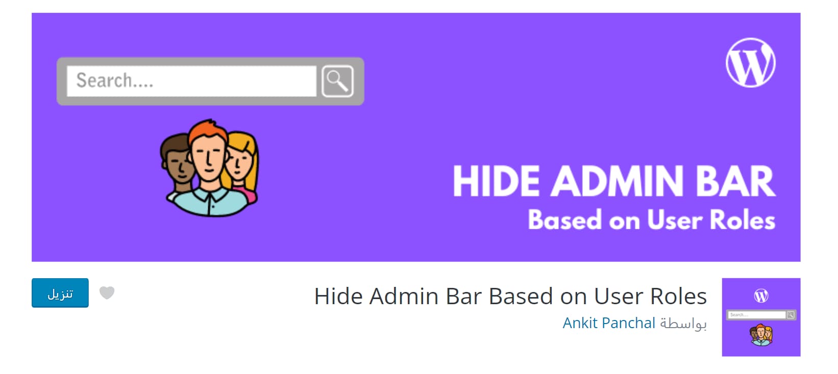 تسمح إضافة Hide Admin Bar Based on User Roles بإخفاء شريط الأدمن، بناءً على رُتبة المُستخدم، حيث أنك من خلالها يمكنك: