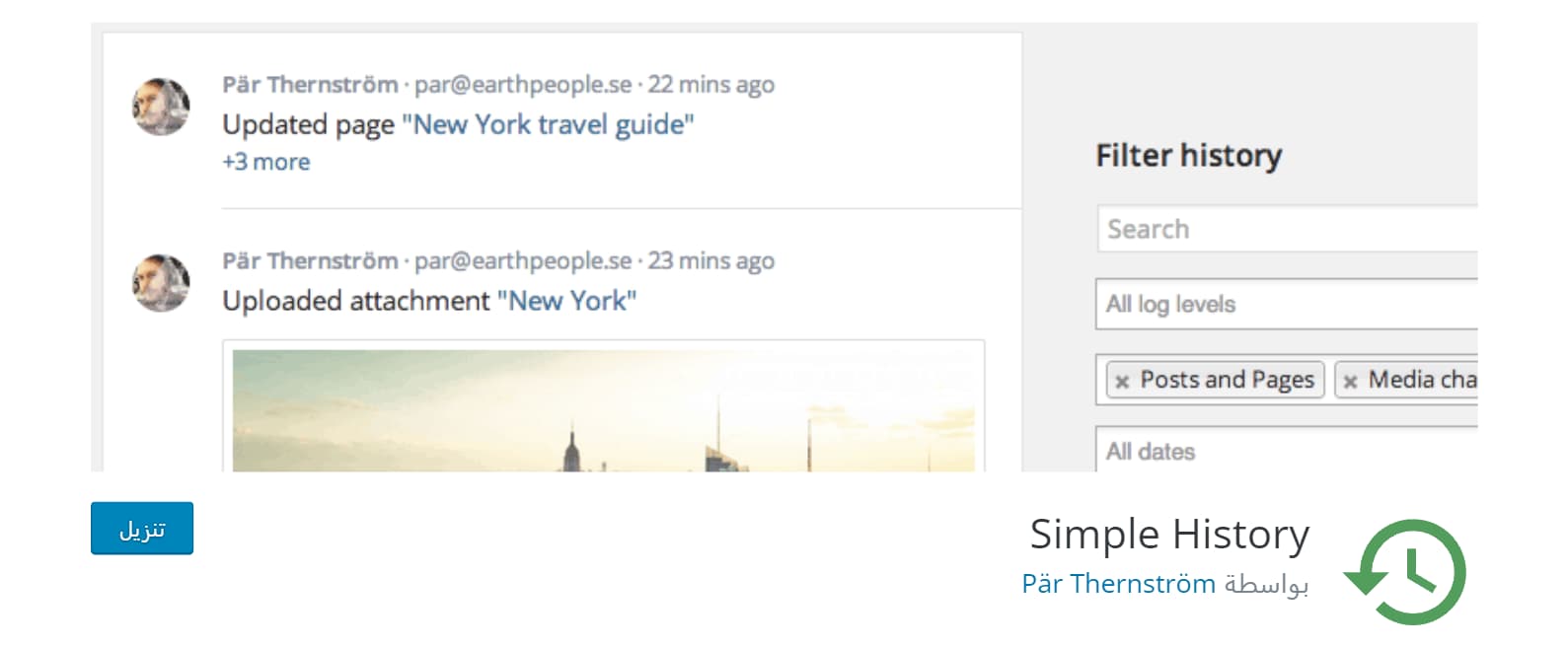تُعد إضافة Simple History أداة مجانية، تُمكنك من معرفة التغييرات التي يقوم بها مستخدمي موقعك، مثل: