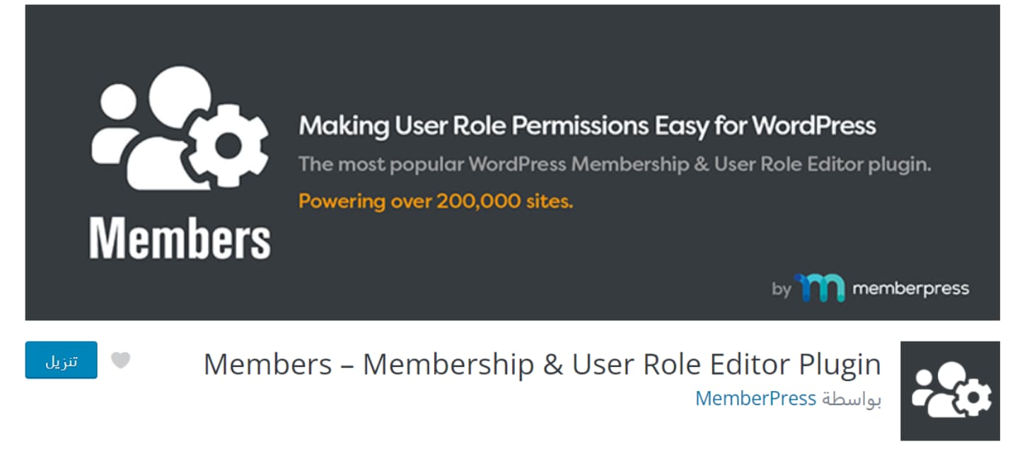 تُعد إضافة Members إضافة مجانية أخرى ضمن إضافات إدارة المستخدم، إذ يمكنك التحكم في رُتب المستخدم، وإدارتها بشكل بسيط، وسلس. يمكنك باستخدام هذه الإضافة: