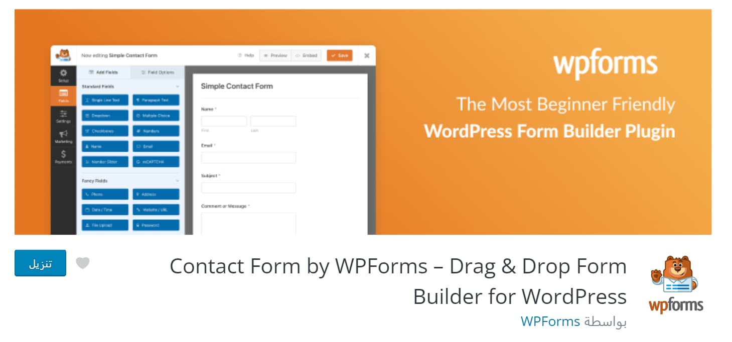 هي أداة يمكنك الاستعانة بها إن أردت إنشاء نماذج اتصال، أو تسويق، أو تبرع، أو أي نماذج أخري. كما أنها سهلة الاستخدام، إذ يمكنك إنشاء النماذج من خلال طريقة السحب والإفلات. ويمكنك الاستعانة بالنسخة المجانية لهذه الإضافة لـ: