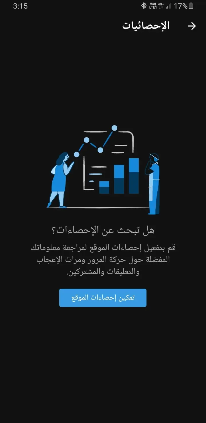 وعند الضغط على الخيار الأول، وهو الإحصائيات، تظهر لك هذه الرسالة عادة، وكل ما تحتاجه هو الضغط على تمكين إحصائيات الموقع:
