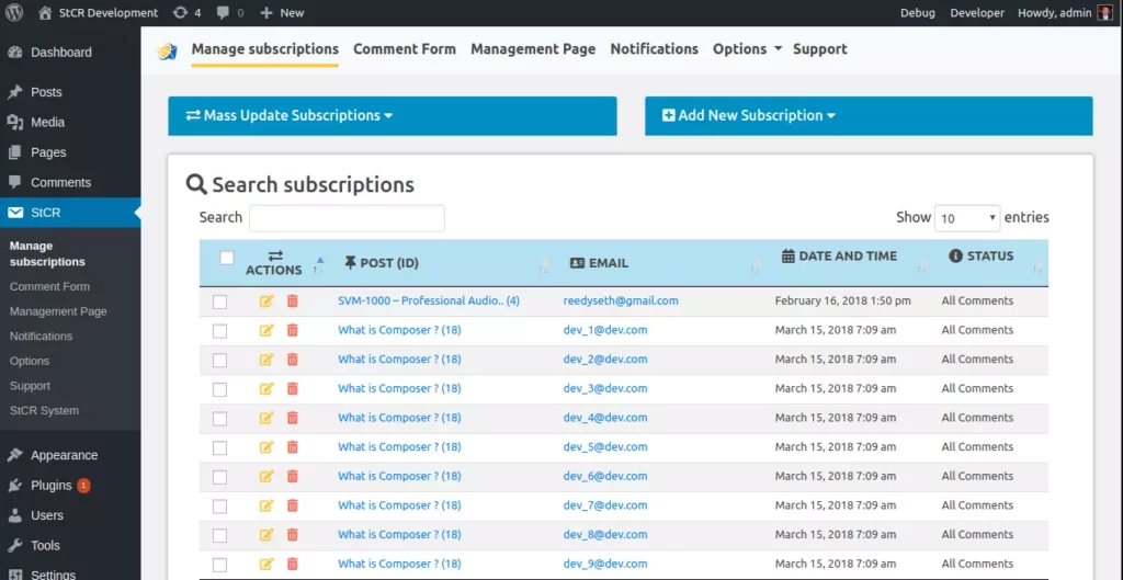 - تتيح لك إدارة الاشتراكات الخاصة بك بسهولة، ويمكنك استيراد بيانات الاشتراك في التعليقات الخاصة بإصدار Mark Jaquith.