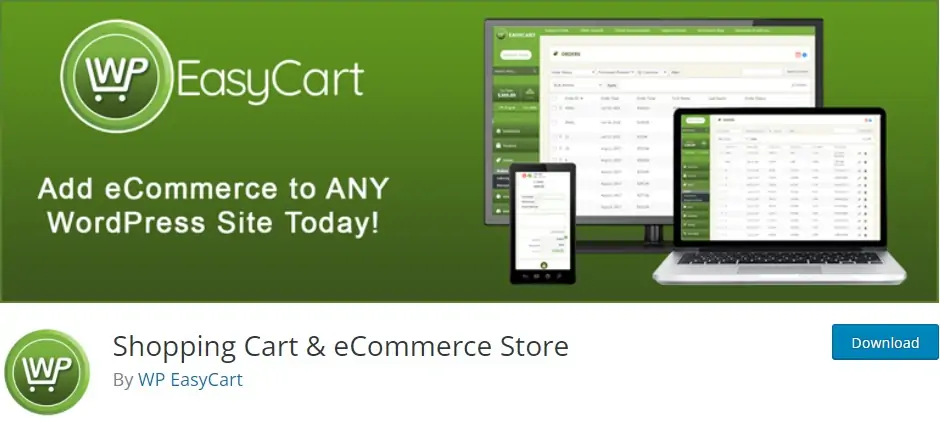 WP EasyCart هي من إضافات عربة التسوق البسيطة والتي تتيح لك إنشاء عربة تسوق على موقع ووردبريس الخاص بك بسهولة. ستتمكن من خلالها من بيع أنواع مختلفة من المنتجات بما في ذلك المنتجات الرقمية، والاشتراكات، والخدمات والتبرعات...وغيرها.