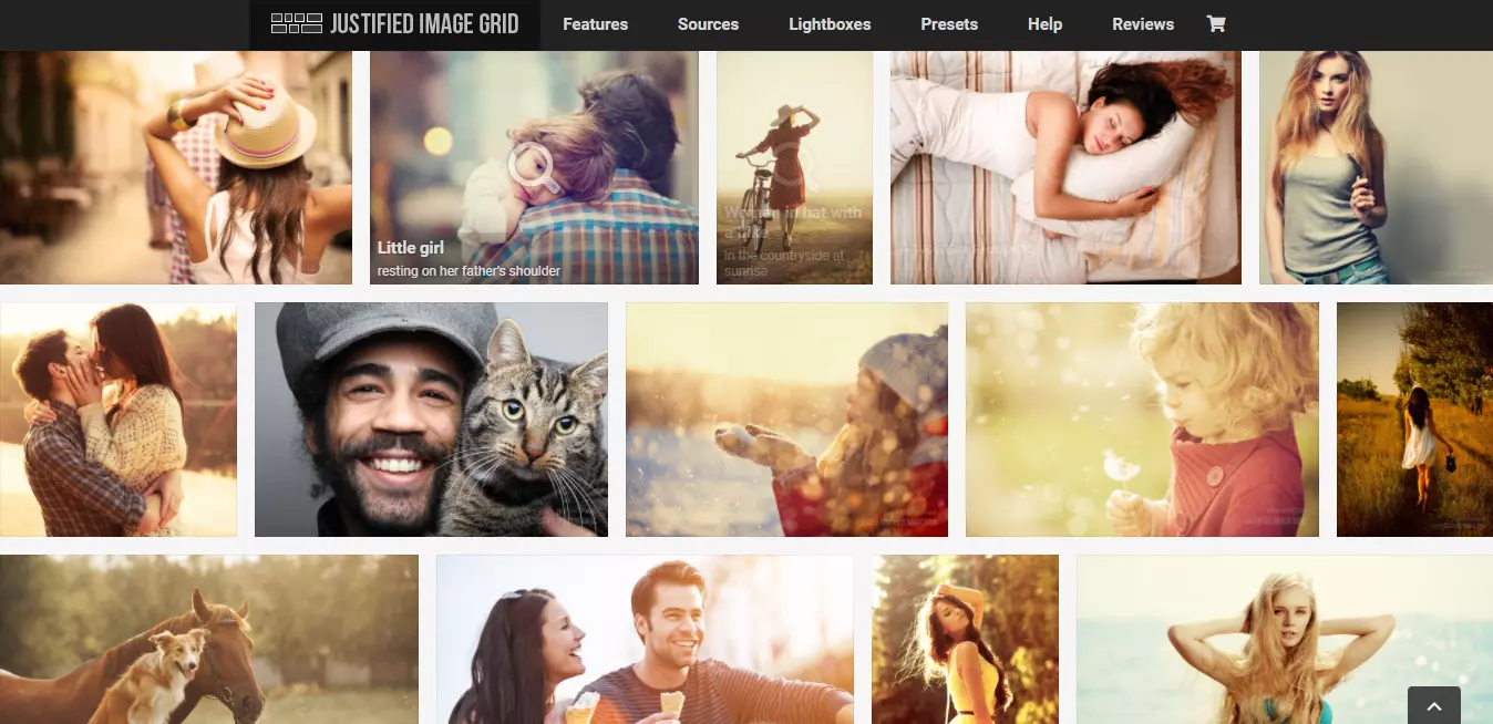 - تتضمن معرض صور ووردبريس المتوافق تماماً مع أجهزة الهاتف المحمول، كما تساعدك في تنظيم صورك في شكل شبكة صور أفقية متوازنة تماماً وتجذب العين من اليسار إلى اليمين.