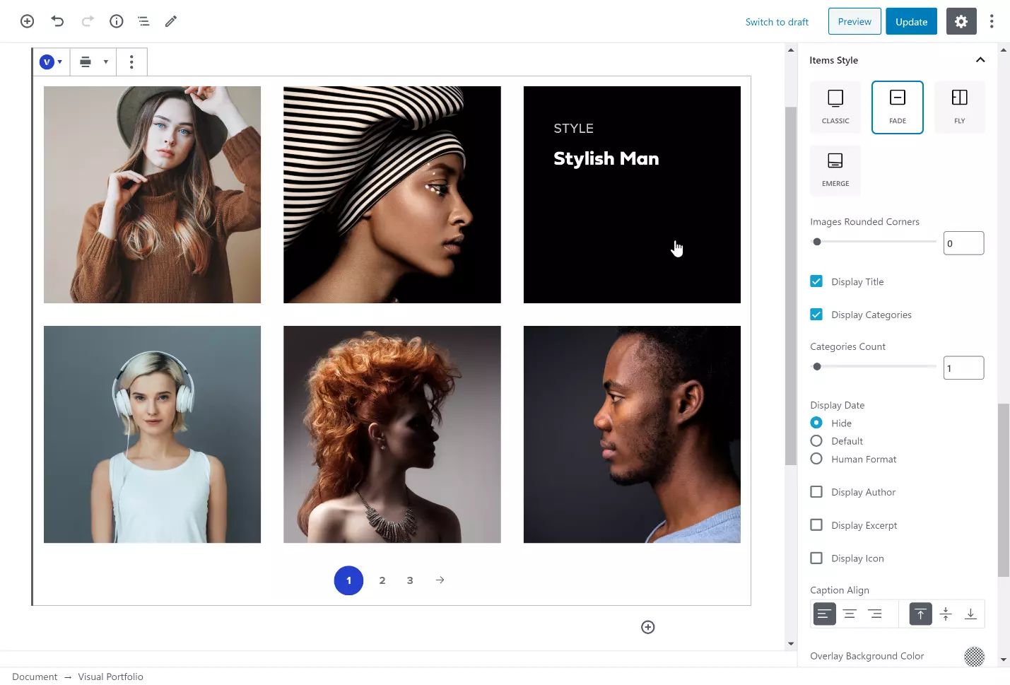 تم تصميم هذه الإضافة خصيصاً لمصوري الفوتوغرافر والأشخاص والشركات الذين يرغبون في إنشاء حافظات صور تعرض أعمالهم أو منتجاتهم؛ حيث يمكنها إنشاء محافظ أو واجهات عرض أو إعلانات تشويقية، كما يمكنها إنشاء أنواع منشورات مخصصة جديدة أو استخدام منشورات المدونة الحالية أو منتجات مخصصة لنوع المنشور، ومن أهم ميزاتها الأخرى ما يلي: