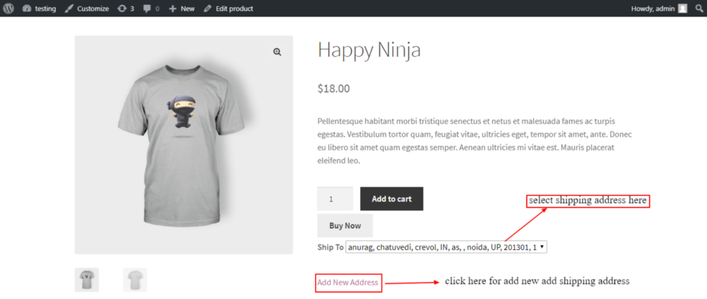 - خيار لتحديد عنوان الشحن أو إضافة عنوان شحن جديد على صفحة المنتج الفردي عند النقر فوق زر الخروج.