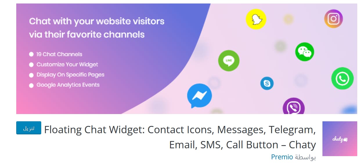 تسمح لك إضافة Chaty بمتابعة عملائك على منصات التواصل الاجتماعي المُفضلة لديهم، وذلك بعد خروجهم من موقعك. كما يُمكنك نشر الإعلانات الخاصة بعروض يوم الجمعة البيضاء على منصات التواصل الاجتماعي، بواسطة تلك الإضافة.