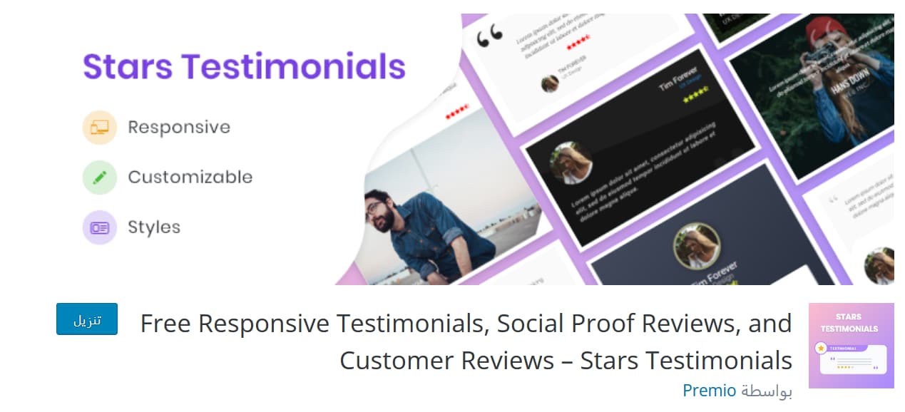 عبر الاستعانة بإضافة Stars Testimonials، باستطاعتك عرض شهادات عملائك على الصفحة الرئيسية الخاصة بموقعك، أو في أي مكان آخر ترغب به؛ لتعزيز مصداقيتك، وزيادة معدلات التحويل الخاصة بك يوم الجمعة البيضاء. كما بإمكانك إضافة صور العملاء على تعليقاتهم، بالإضافة إلى تضمين تقييمات النجوم الخاصة بهم.