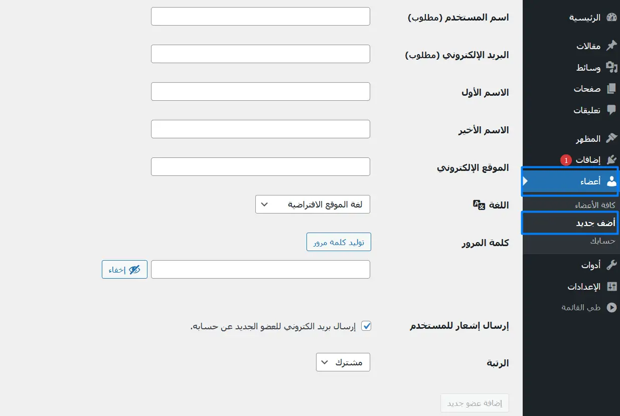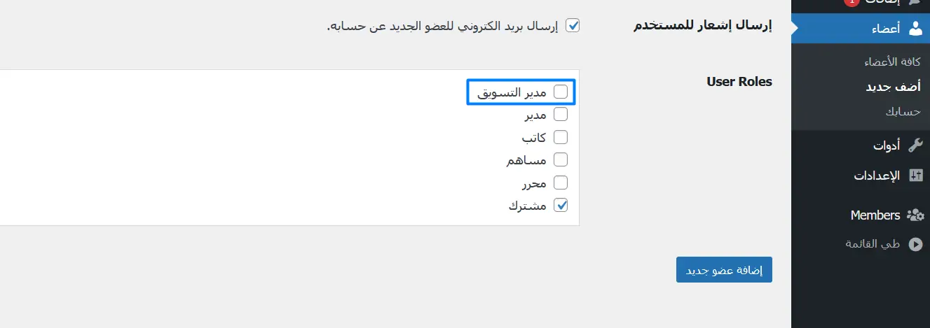 - توجه إلى قسم "أعضاء" ومن ثم اختر "أضف جديد"