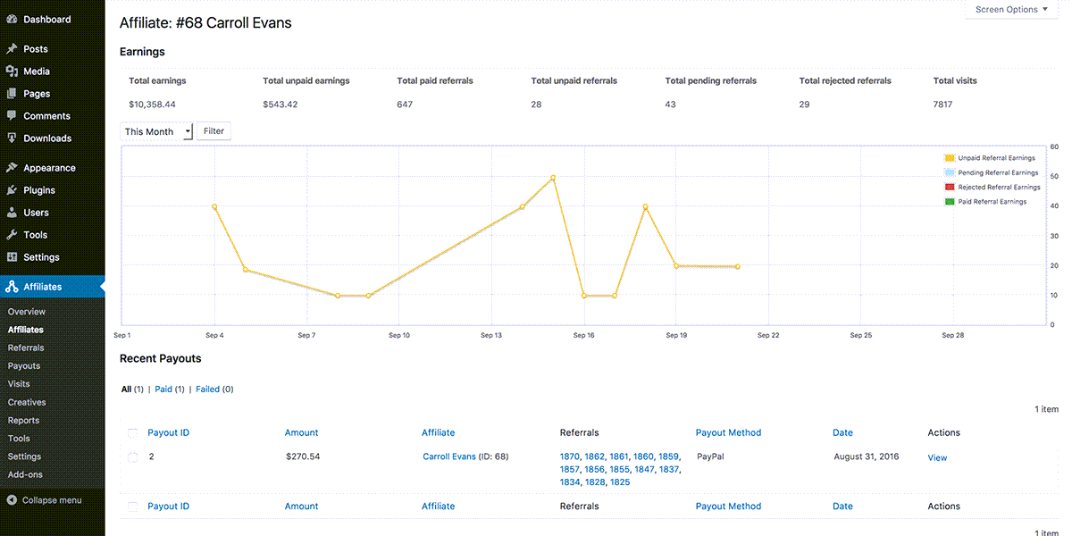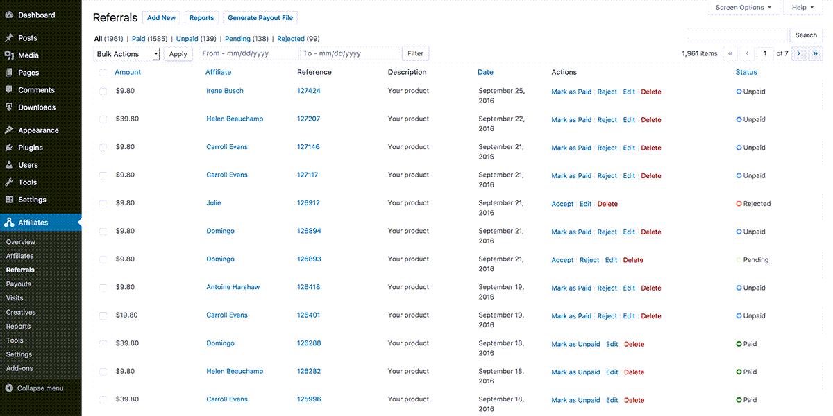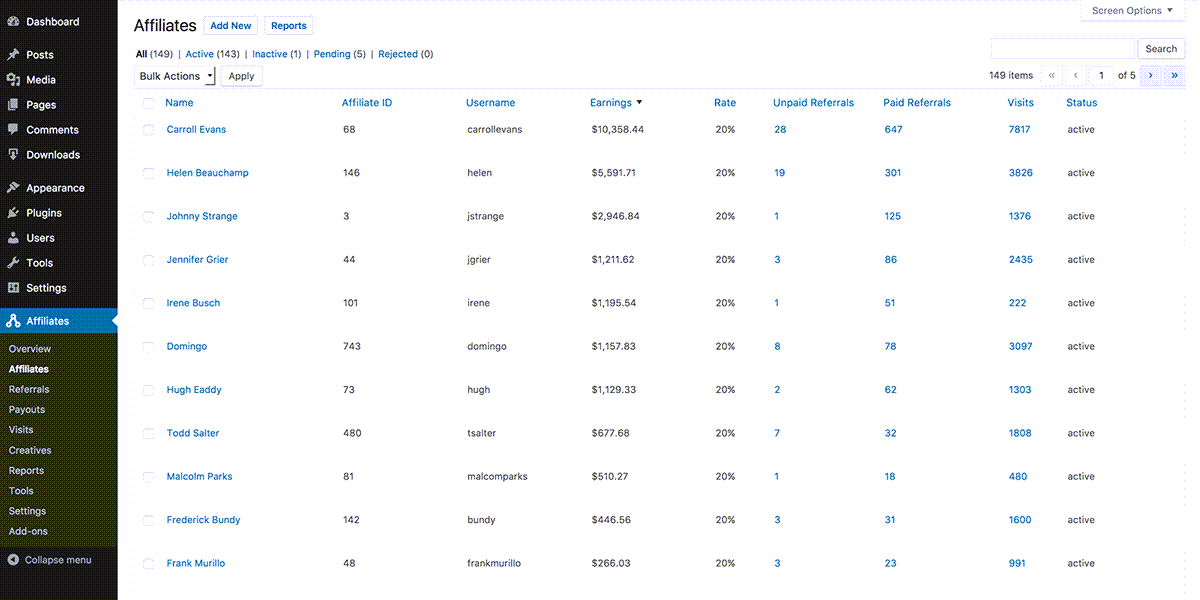 إنه يفعل ما تريد القيام به: مساعدتك في تجنيد وتسجيل وإدارة الشركاء التابعين لك. يمكنك بعد ذلك تتبع جميع الإحالات وإصدار المدفوعات بناءً على الإرشادات التي تم تحديدها في برنامجك.
