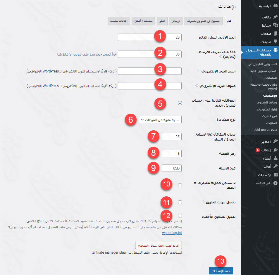 بهذا تكون قد أنهيت إعدادات نظام التسويق بالعمولة الخاص بك، ويمكنك الدخول إلى الصفحات التي ذكرناها في الخطوة رقم 6 للتأكد من أن برنامج الأفلييت لديك يعمل بشكل جيد.