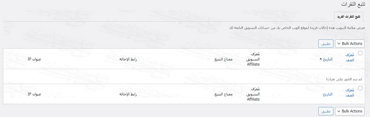 يمكنك تتبع النقرات على هذا الجدول بشكل منفرد لمعرفة طبيعة الإحالات التي وردت لك ومن المسوّق الذي أرسلها، كما يمكنك حذفها متى ما أردت.