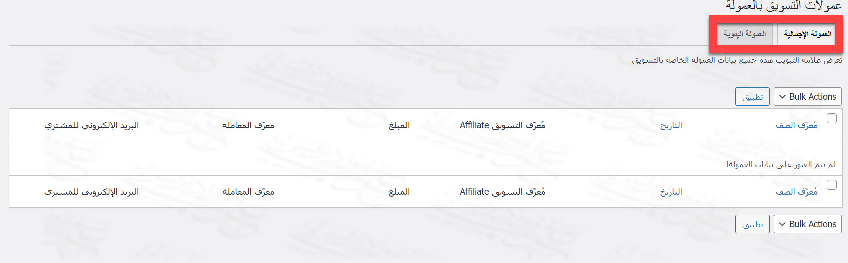 العمولات الإجمالية (Overall Commissions): يمكنك مشاهدة بياناتها (رقم الإحالة، المبلغ، ايميل المشتري)