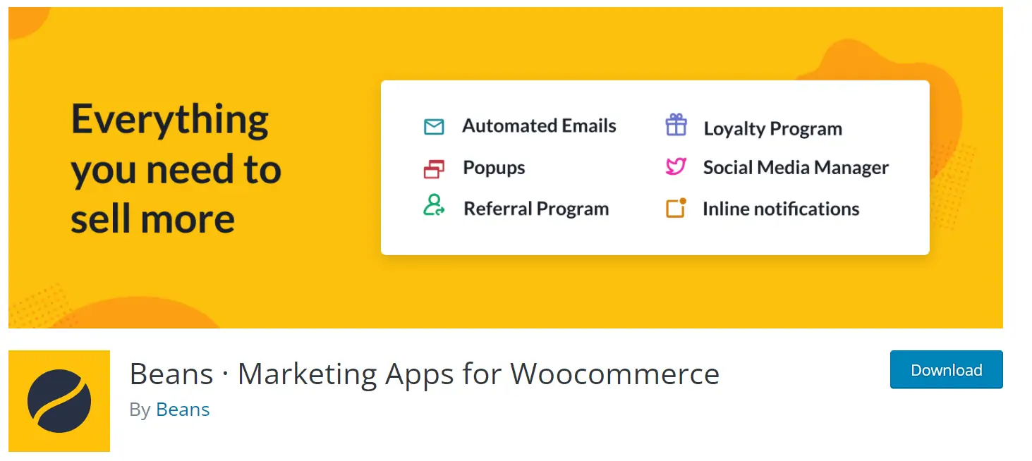 تتجاوز وظائف إضافة Beans برامج ولاء العملاء، فتشمل النوافذ المنبثقة الذكية، ومدير وسائل التواصل الاجتماعي، ويمكن استخدامه فقط لميزات برامج الولاء، وبالتالي فوجود خيارات متنوعة بالإضافة يجعلها ضمن الترشيحات المثالية لمتجرك الإلكتروني.