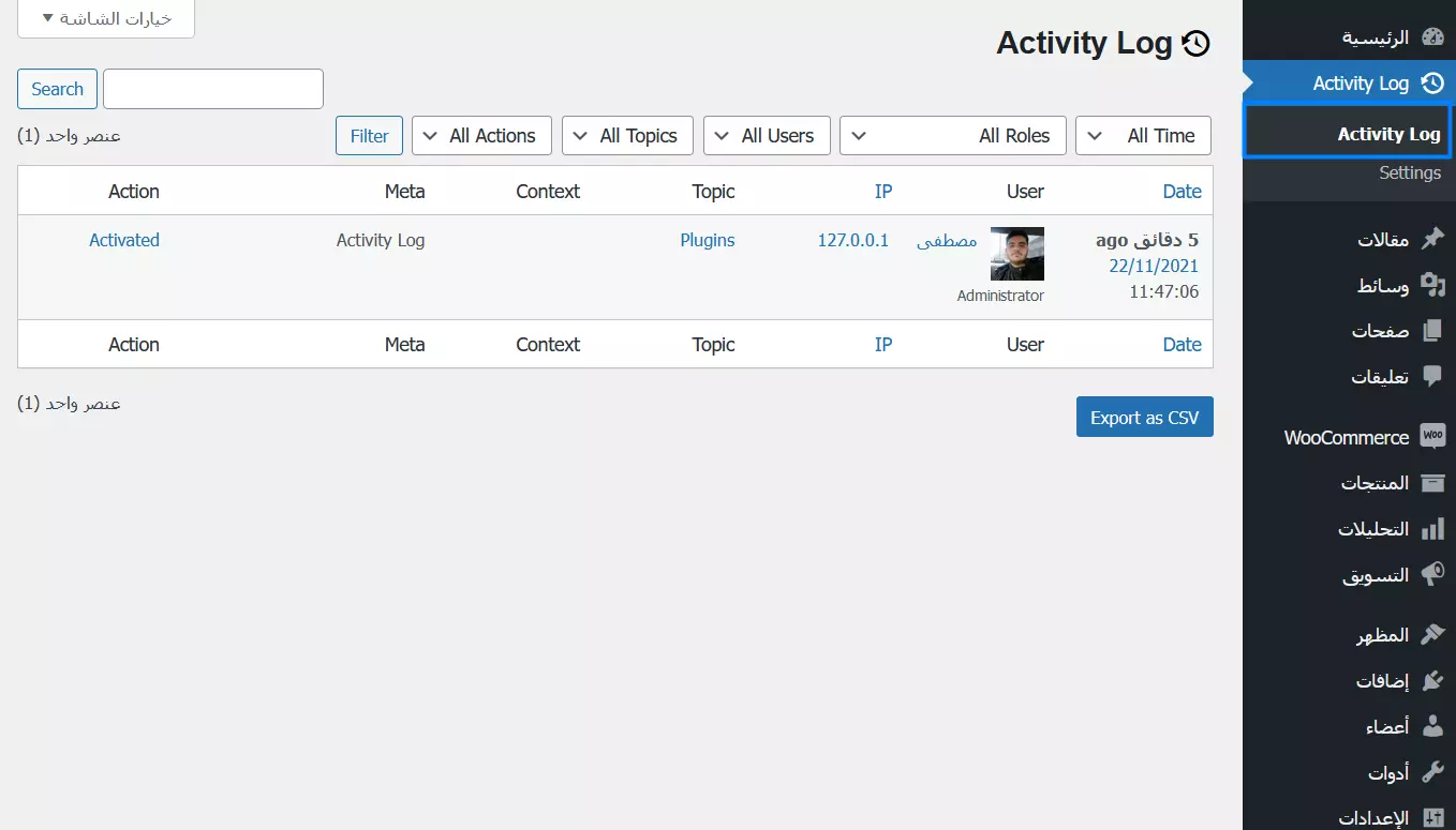 استخدام إضافة Activity Log لتتبع الأنشطة
