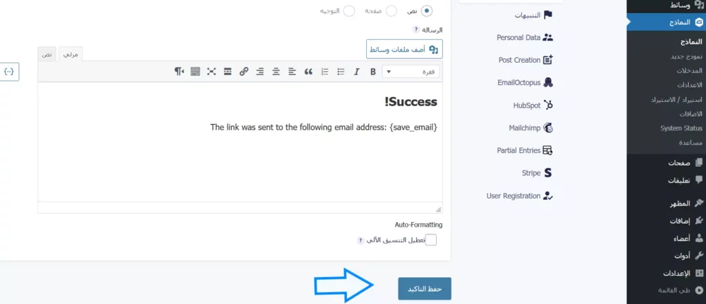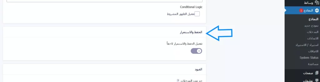 - وجود خاصية حفظ البيانات في نموذج ووردبريس، وسنشرح كيفية تفعيل هذه الخاصية في الخطوات التالية.