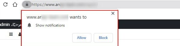 بالنقر على زر السماح allow)) الذي يظهر في أعلى نافذة المتصفح وبجانب حقل علامات التبويب، ستكون إشارة بأن هذا المستخدم مهتم بالمحتوى الذي تقدمه بالفعل، لتكون بعدها قاعدة من الجمهور الخاص بك والذي يهتم بالمحتوى الذي تقدمه بما يُمكّنك من بناء هذا الجمهور بتقديم محتوى مخصص يقع تحت قائمة اهتماماتهم.