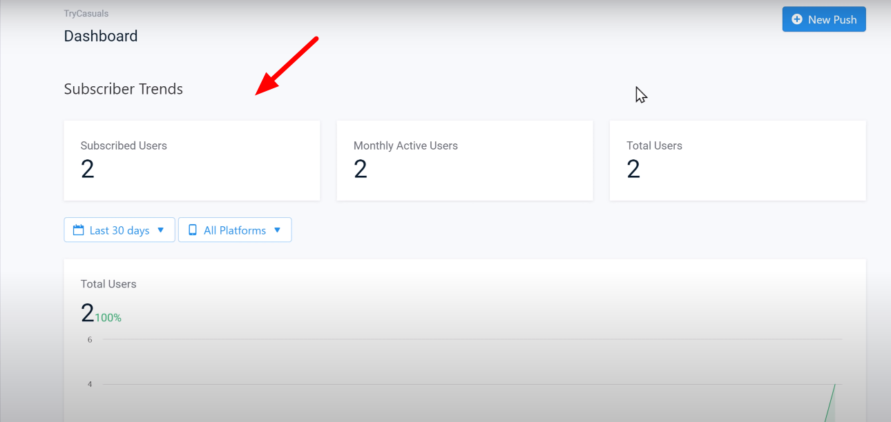 - في نافذة عدد المشتركين التي وصلنا إليها سابقًا انقر على New Push في الأعلى.