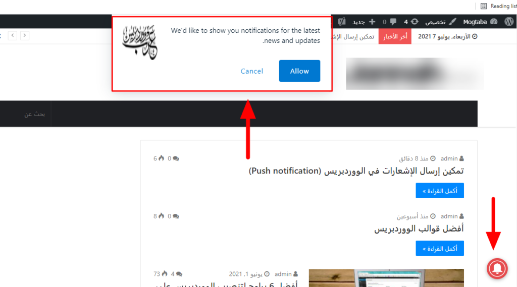 طريقة تمكين إرسال الإشعارات في الووردبريس