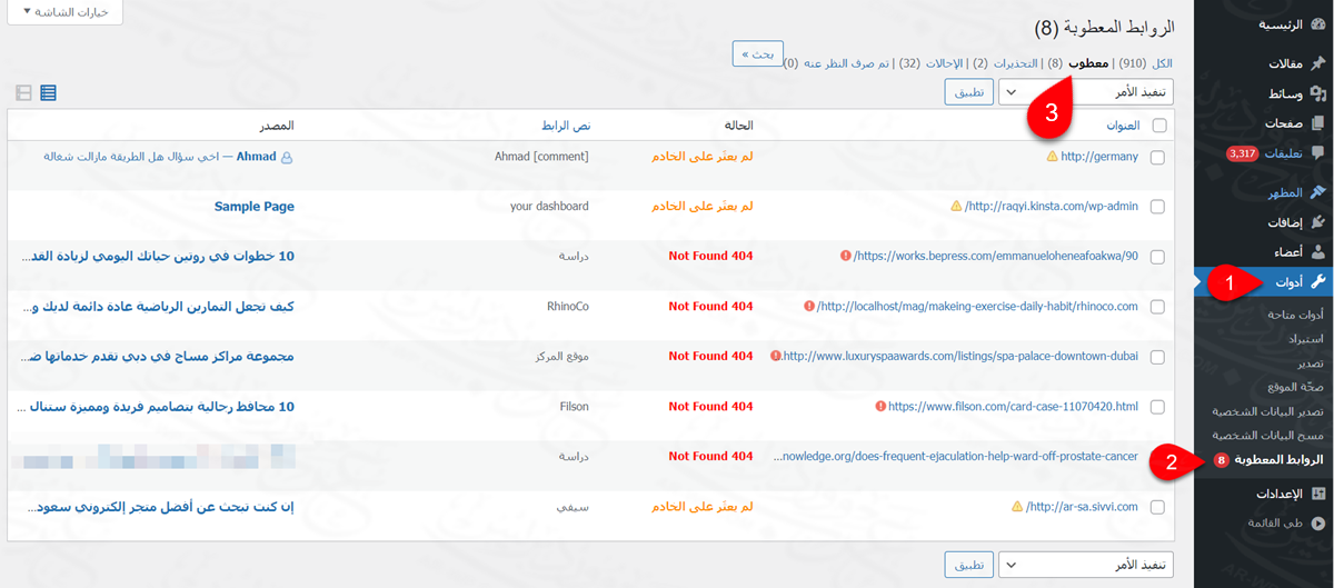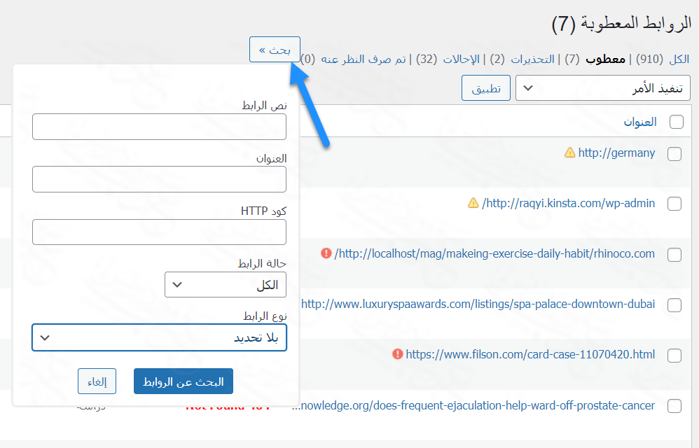 خطوات فحص الروابط المعطوبة في ووردبريس
