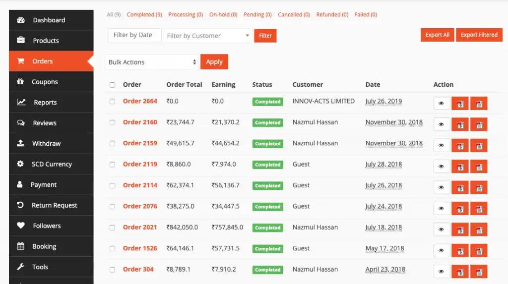 إدارة الطلبات كيف تنشئ متجر إلكتروني متعدد البائعين باستخدام ووردبريس