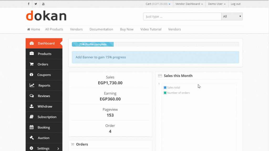 تعد إضافة Dokan إحدى أشهر برمجيات تعدد البائعين على منصة ووردبريس بفضل توفيرها الكثير من المزايا المتقدمة والتي ستسمح لمالكي المتاجر الإلكترونية بتحويل موقعهم إلى منصات شبيهة بأمازون أو سلة أو شوبيفاي.
