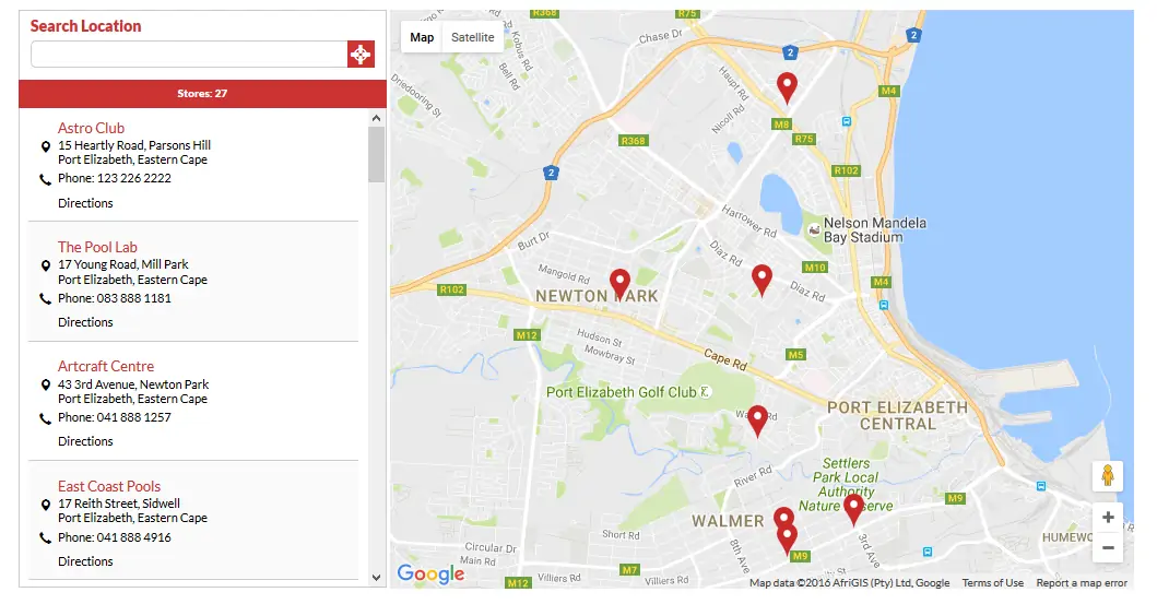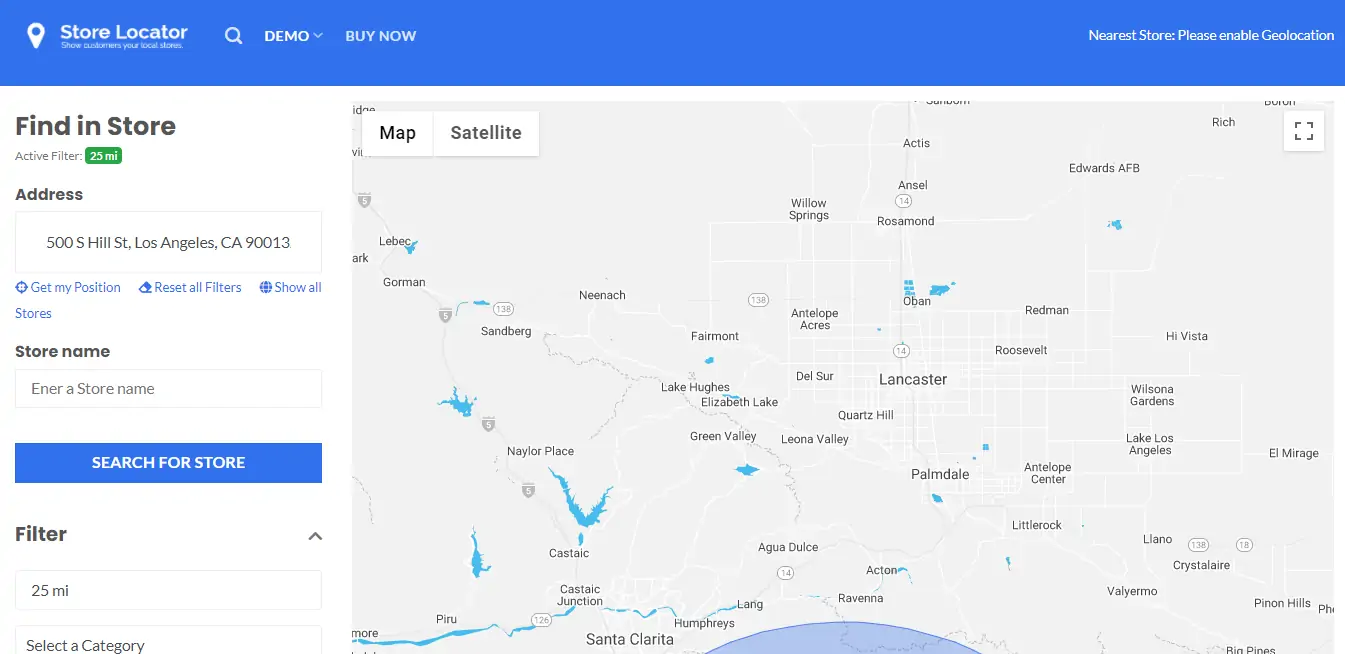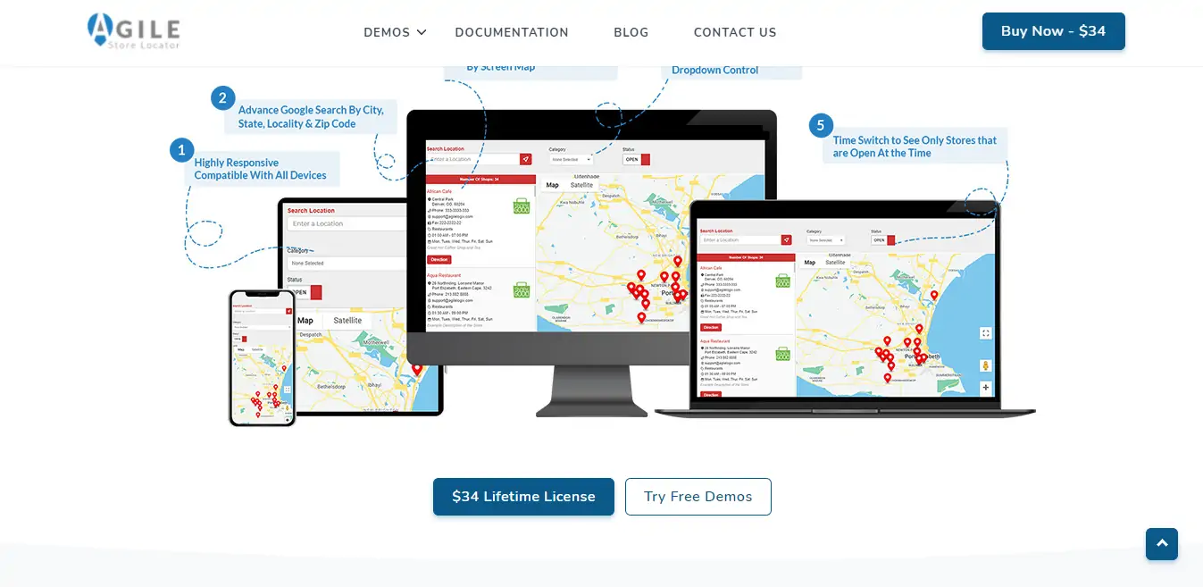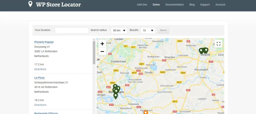 - تدعم خرائط جوجل مع وظيفة قوية لتحديد موقع المتجر وتسمح للزائرين بالبحث ببساطة عن المواقع القريبة من متاجرك وتصفيتها حسب المسافة، بالإضافة إلى المدينة والعنوان ونوع المتجر أو أي حقل مخصص آخر.