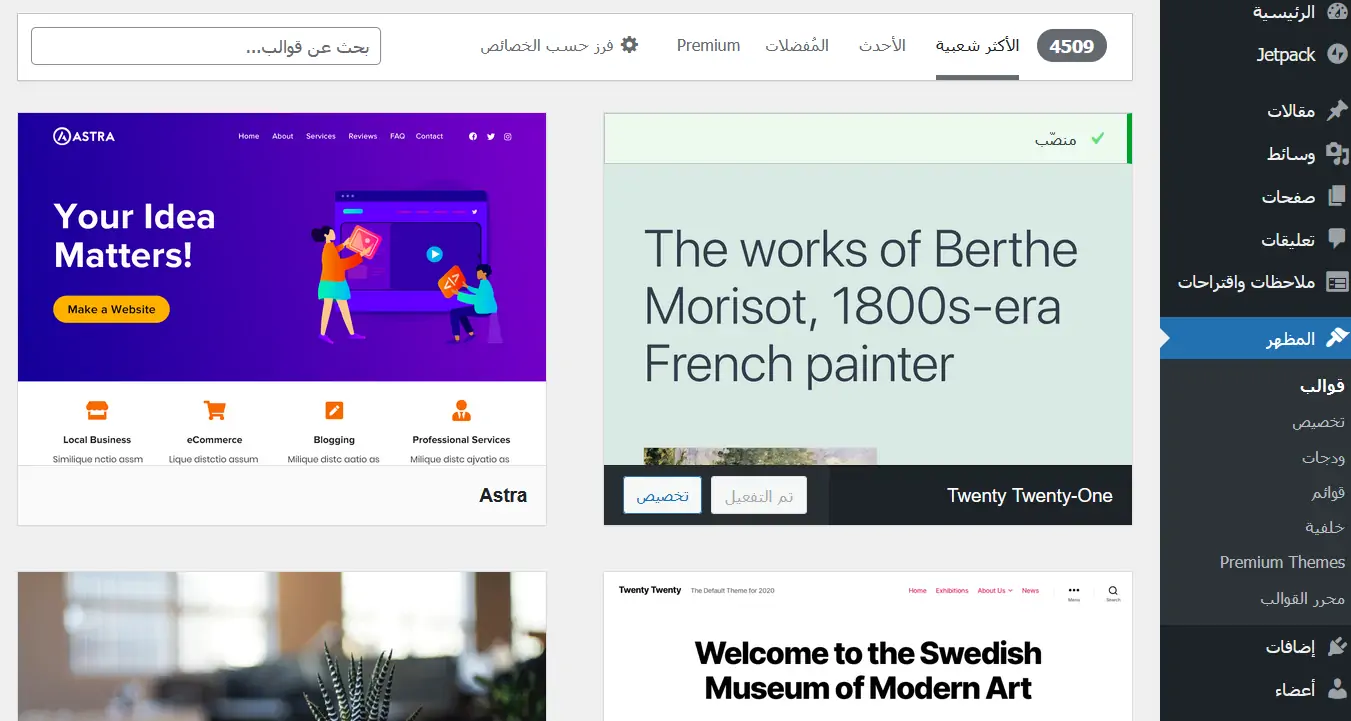 وإلى جانب ذلك فإن أمورك الآن قد أصبحت أكثر احترافية، حيث أصبح بإمكانك شراء وتنصيب قالب مخصص دون مشكلات، وقد تحدثنا سابقًا عن كيفية اختيار قالب ووردبريس مناسب لفكرة الموقع بأسلوب علمي.